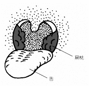 のどの奥、左右両側にある扁桃が大きい場合を扁桃肥大といいます。